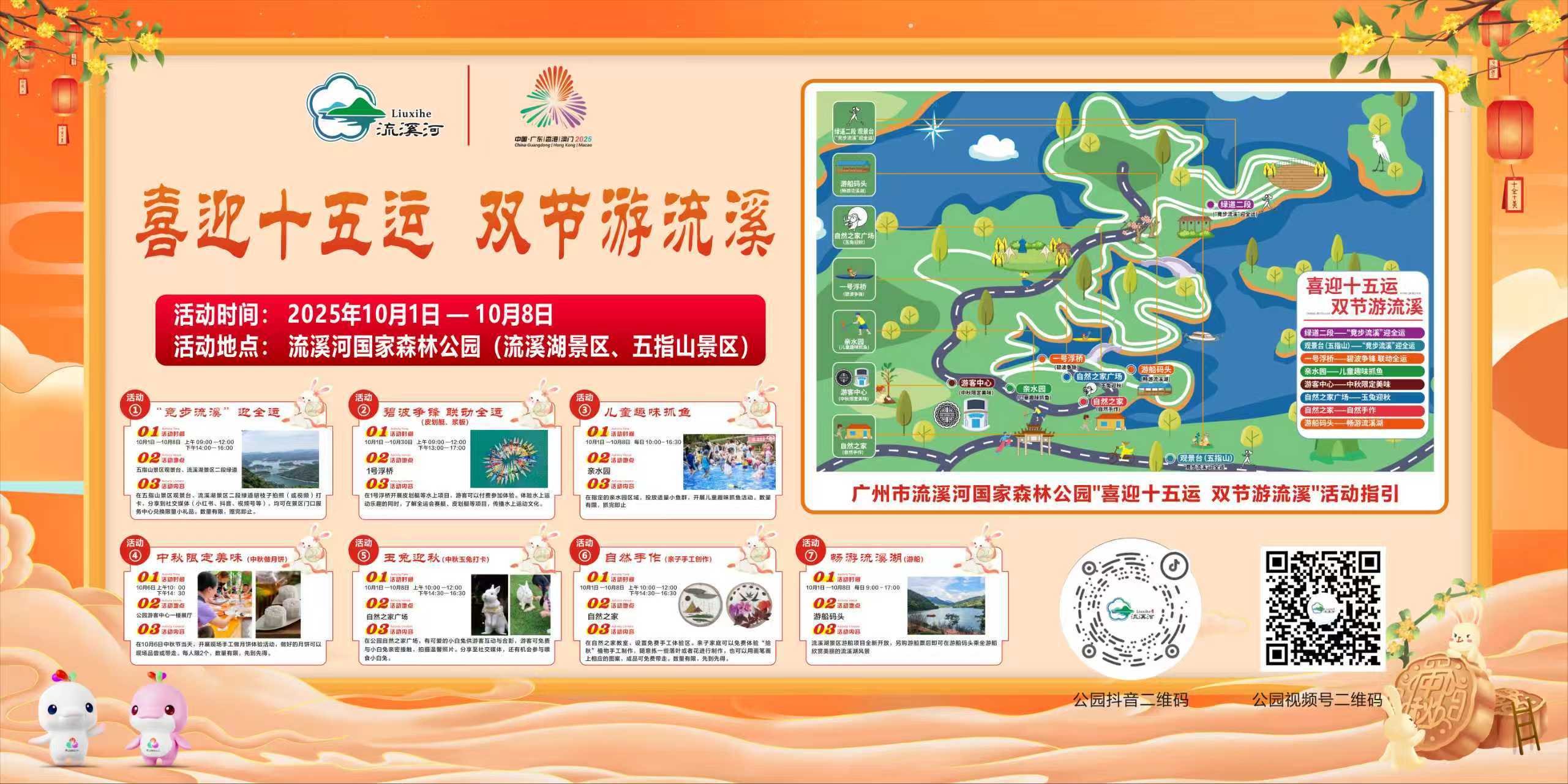 中秋国庆双节将至,新“羊城八景”之一的“流溪烟渚”中的流溪河国家森林公园,以“喜迎十五运 双节游流溪”为主题,在双节期间精心打造七大特色活动,将山水风光与运动活力、民俗文化深度融合,诚邀市民游客共赴一场自然与节日交织的假日盛宴。