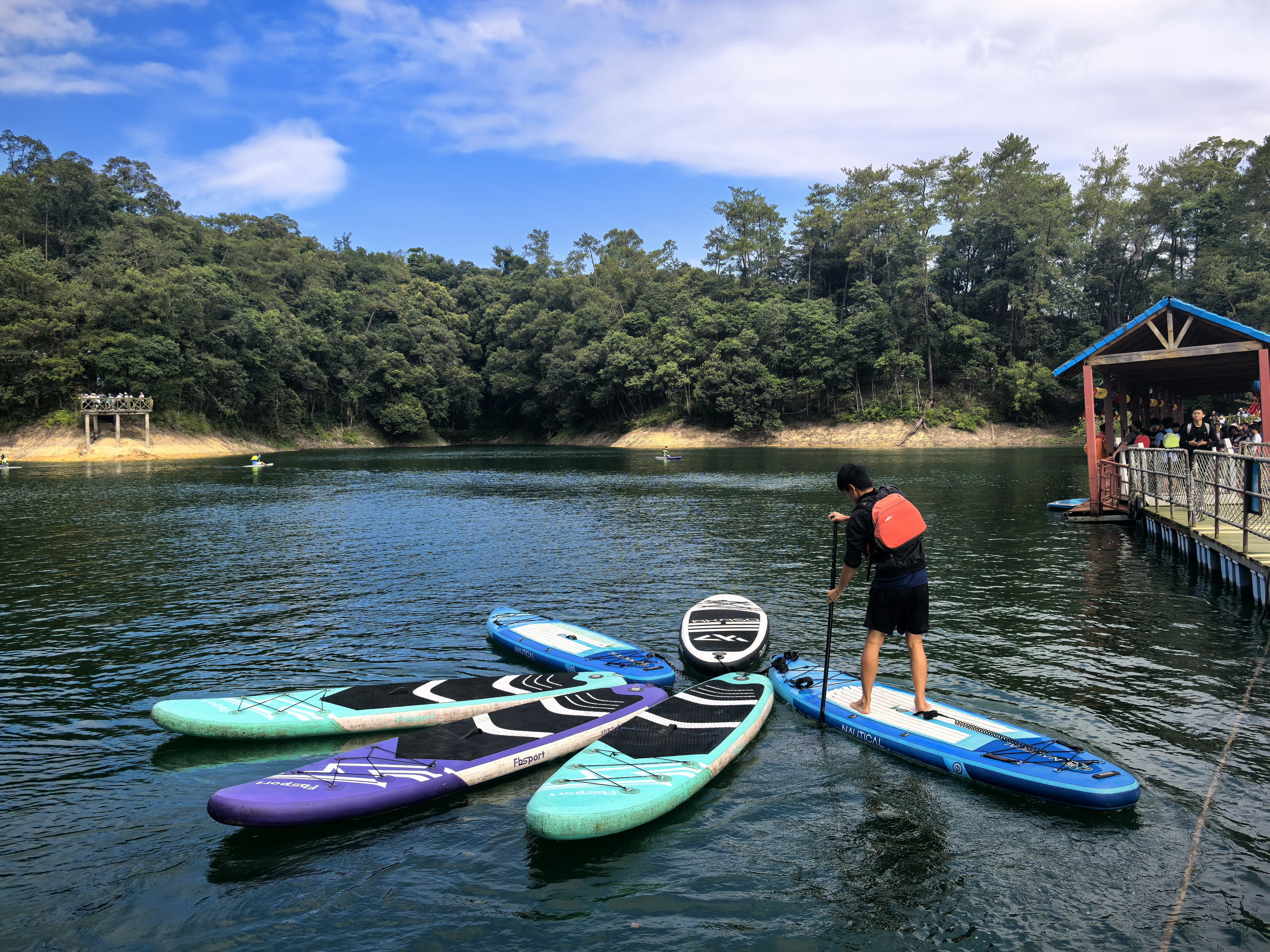 流溪湖景区1号浮桥开设自费皮划艇、桨板项目,游客在体验水上运动乐趣的同时,可了解全运会赛艇、皮划艇项目知识,感受水上运动文化。