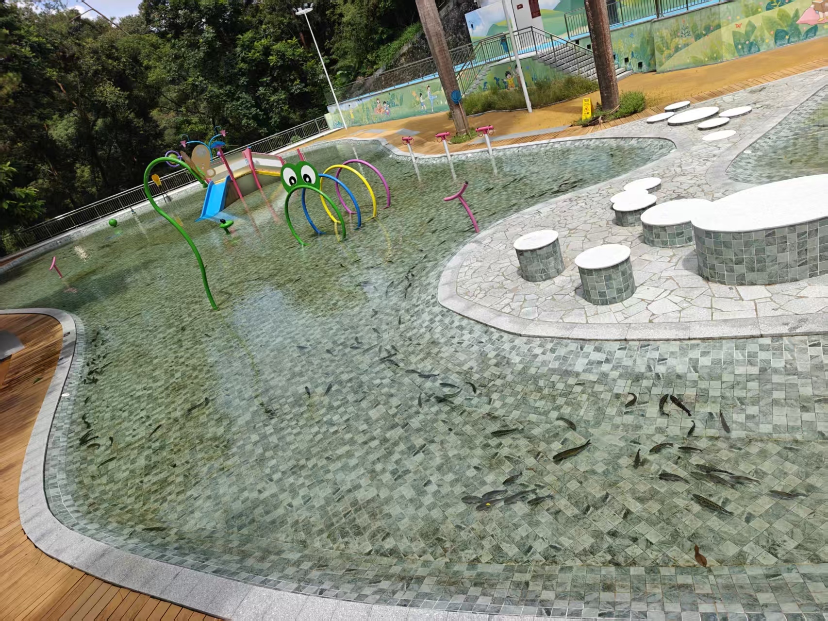 亲水园区域投放小鱼群,1.2米以下儿童可直接参与;1.2米—1.5米儿童凭当日1张公园儿童票参与;成人凭当日2张门票(检票人员盖章确认)并在官方账号活动视频评论区留言“报名趣味抓鱼”可兑换参与资格。全程需徒手抓鱼,严禁使用任何捞鱼网、钓竿、塑料袋等工具,每人每场次限带走2条,3岁—60岁人群可参与。水池及周边地面湿滑,严禁奔跑、追逐、打闹。(家长必须全程陪同并看护好自己的孩子。请妥善保管个人物品,建议手机等电子产品做好防水措施。)