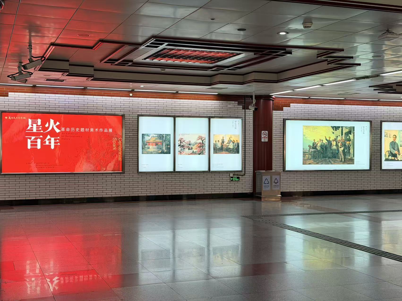 在农讲所地铁站,“星火百年——革命历史题材美术作品展”同步开展。展览以“美术作品里的中国革命”为脉络,展出农讲所纪念馆和广州艺术博物院馆藏45幅革命历史题材画作,让红色历史融入城市公共空间。